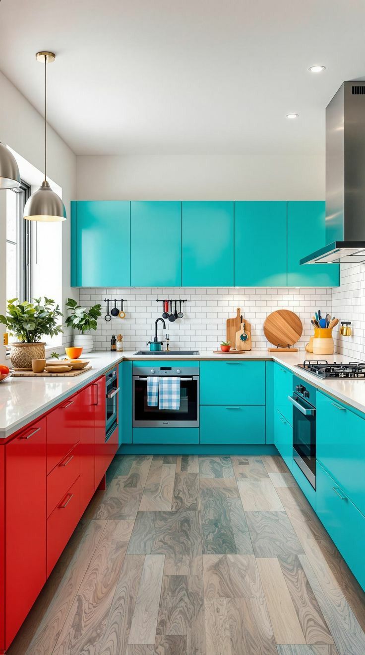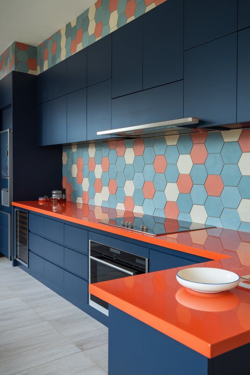 Thiết kế nội thất hiện đại khuyến khích sự sáng tạo và nhấn mạnh vào tiện ích tối ưu. Tủ bếp màu nổi mang lại không gian vừa đẹp vừa tiện nghi, thể hiện cá tính rõ rệt. Khi kết hợp cùng thiết bị âm tủ, không gian càng trở nên gọn gàng và sang trọng. Đây là lựa chọn lý tưởng để biến phòng bếp thành nơi truyền cảm hứng hàng ngày.