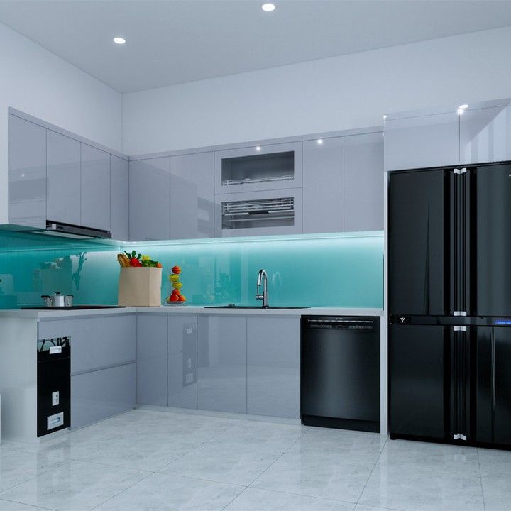 Kính ốp bếp với nhiều màu sắc giúp không gian thêm hiện đại, nổi bật và cá tính. Sự kết hợp với gỗ công nghiệp tạo nên nội thất đẹp, phù hợp với nhiều phong cách khác nhau. Gia đình có thể lựa chọn gam màu sáng hoặc tối tùy sở thích mà vẫn giữ nét sang trọng.