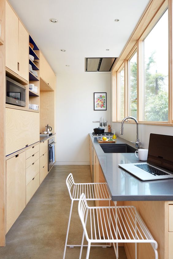 Thiết kế nội thất hiện đại với tủ bếp Laminate song song