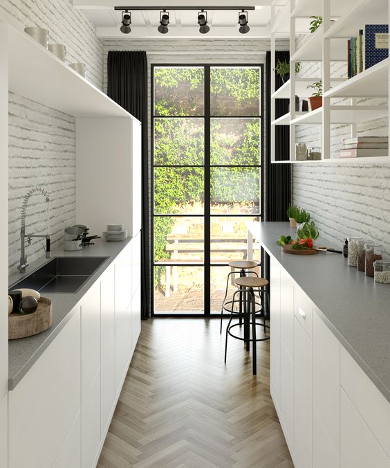 Thiết kế song song lý tưởng cho nhà ống, căn hộ diện tích hẹp. Tận dụng chiều dài thay vì chiều sâu giúp bếp thoáng và sáng hơn.