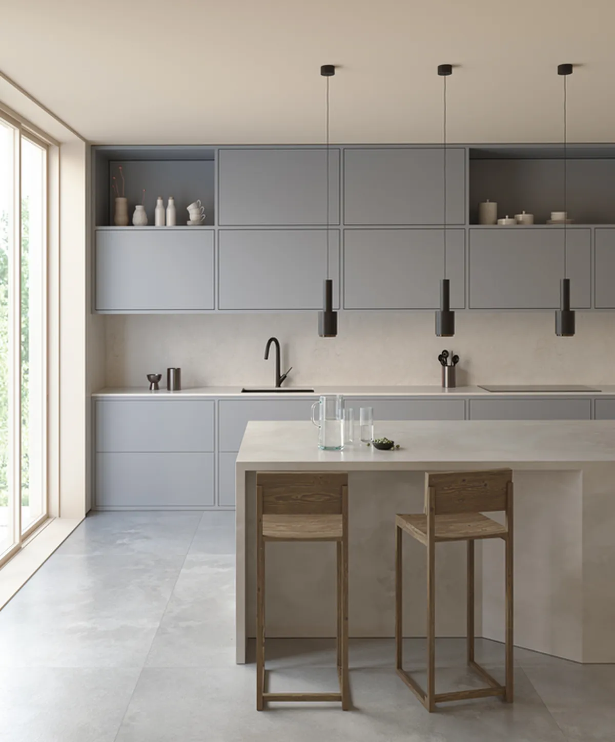 Thiết kế nội thất hiện đại hướng đến sự tiện nghi và tính thẩm mỹ cân bằng. Tủ bếp Bắc Âu chuẩn minimalism dễ dàng kết hợp với ánh sáng tự nhiên và phụ kiện thông minh. Mặt bếp thường sử dụng đá nhân tạo sáng màu, tạo hiệu ứng rộng rãi và sạch sẽ. Nhờ đó, căn bếp trở nên hài hòa, đáp ứng cả công năng lẫn thẩm mỹ.
