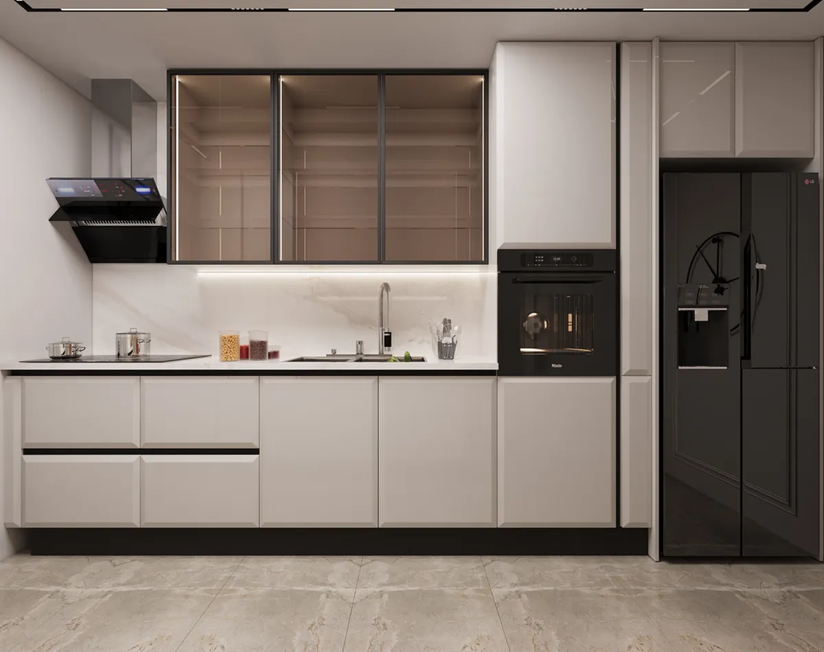 Đèn LED âm tủ tạo điểm nhấn tinh tế, giúp không gian bếp thêm ấm cúng. Kết hợp ánh sáng tự nhiên để tiết kiệm năng lượng.